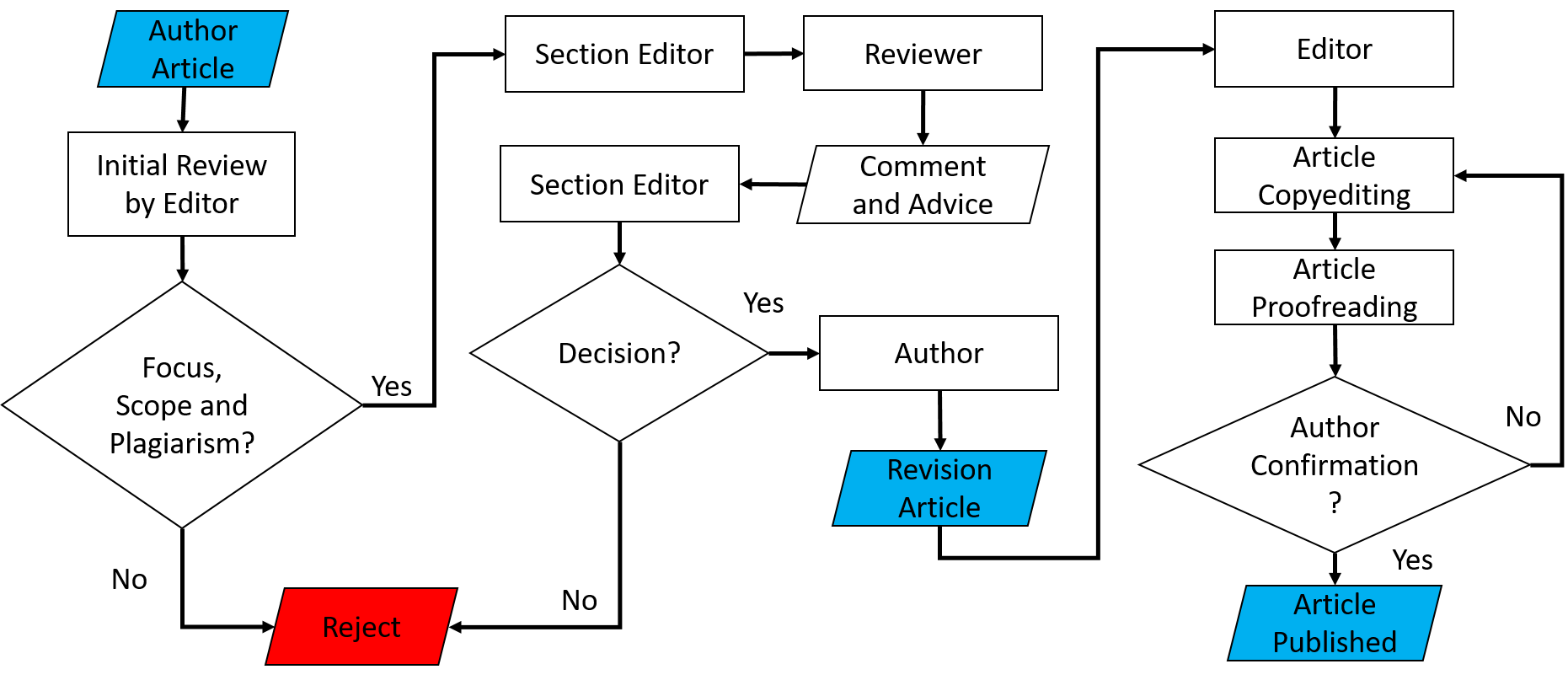 Memanfaatkan umpan balik dari proses peer review, Editor akan membuat keputusan publikasi akhir. Kategori keputusan meliputi: